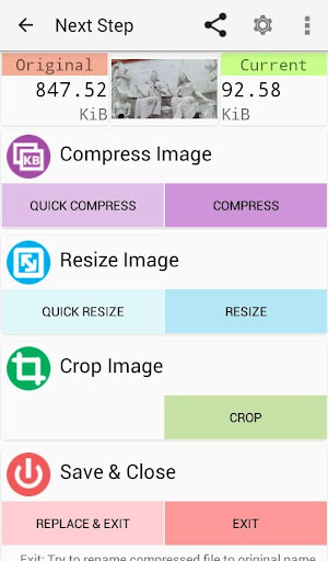 Bahkan jika itu tidak mengkompres gambar, aplikasi gratis ini mengubah ukuran dan memotong gambar asli Anda, menciptakan hasil yang bagus. Satu-satunya downside adalah bahwa Anda harus membagikan gambar di media sosial secara langsung, tanpa menyimpannya di ponsel Anda.